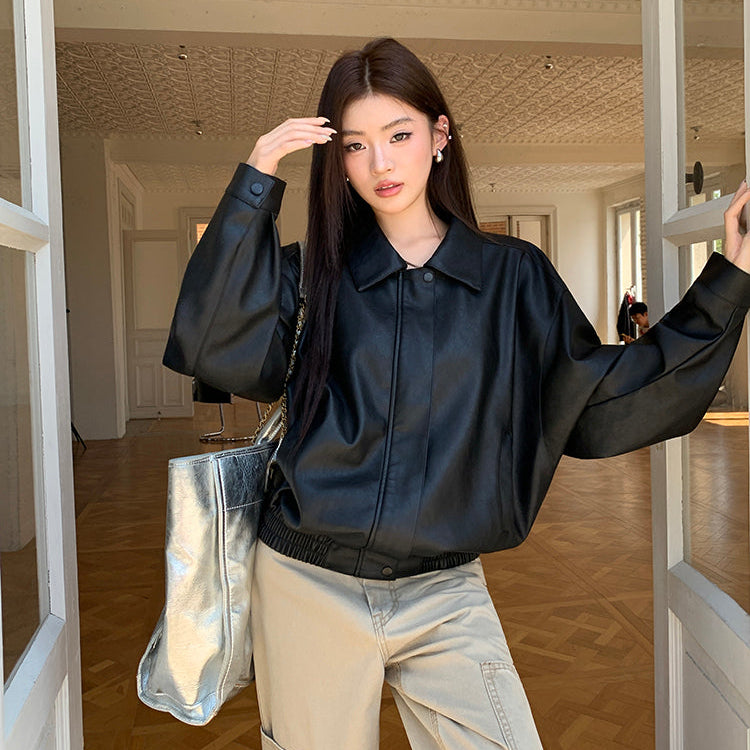 俐落短版剪裁 × 工裝感皮革光澤,酷帥中帶點優雅,一上身就很有氣場。