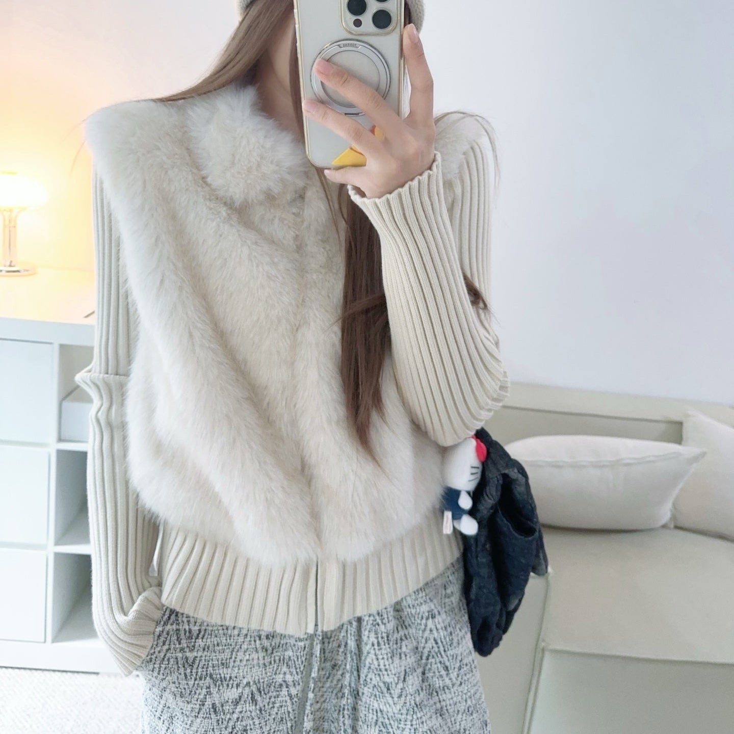 保暖禦寒顯瘦毛毛拼接針織外套-25678