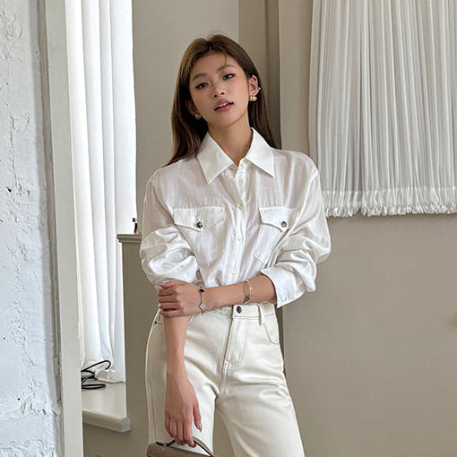 天絲口袋薄襯衫-25648