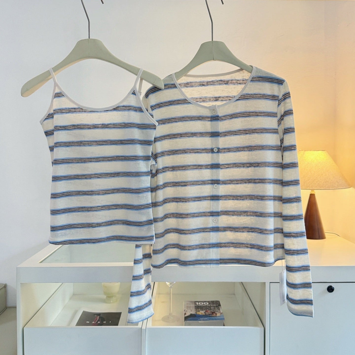 寧靜致遠條紋針織背心防曬開衫兩件套-25612