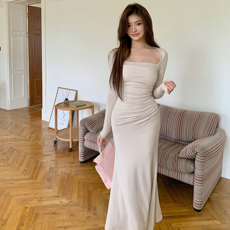 歐仁妮皇后方領褶皺魚尾包臀長洋-25558