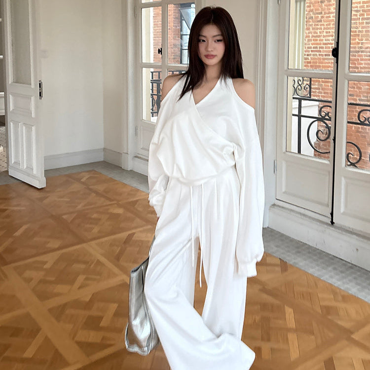 潮模掛脖衛衣抽繩衛褲兩件套-25637