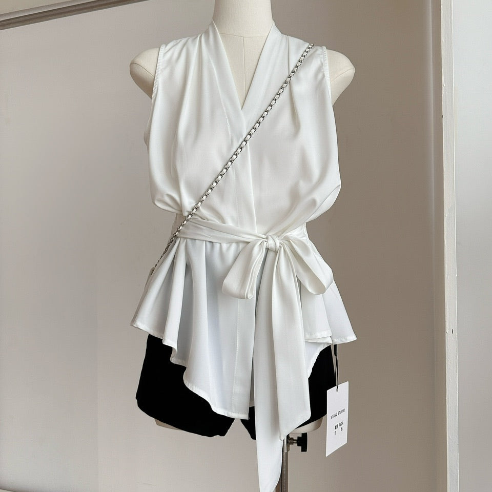 精緻小女人V領綁帶背心-25207