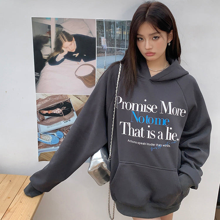 Oversize 字母印花 × 深灰針織,冷感女孩的率性宣言。